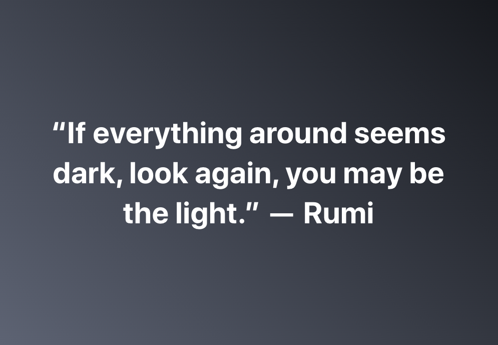 “If everything around seems dark, look again, you may be the light.” — Rumi