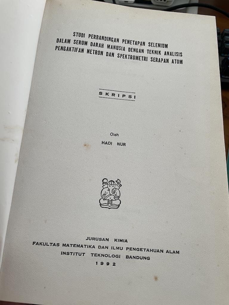 Pada waktu skripsi, beliau menjabat sebagai Direktur Pusat Penelitian Teknologi Nuklir (PPTN) BATAN Bandung. Saya diberi kesempatan melakukan penelitian di kawasan nuklir Bandung, yang memiliki reaktor TRIGA Mark II berkapasitas 250 kW (diresmikan 1965 dan ditingkatkan menjadi 2 MW pada tahun 2000). Beliau dengan penuh kepercayaan memberi izin bagi saya untuk mengiradiasi sampel berupa serum darah manusia langsung di reaktor. Itu pengalaman yang amat berharga yang membuka wawasan riset saya di kemudian hari.